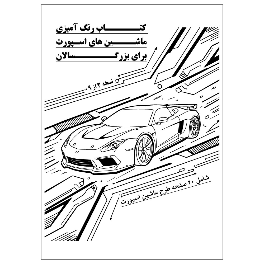 - 20 طرح منحصر به فرد از ماشین های اسپورت: این کتاب شامل 20 طرح جذاب و متنوع از ماشین های اسپورت مشهور و محبوب است. از ماشین های کلاسیک گرفته تا مدل های مدرن، هر طرح با دقت و ظرافت خاصی طراحی شده است تا تجربه ای لذت بخش از رنگ آمیزی را برای شما فراهم کند.